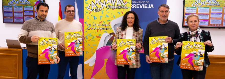La concejal de Fiestas, Rosario Martínez Chazarra, acompañada del presidente de la Asociación del Carnaval de Torrevieja, Paco Pizana y el vicepresidente, César Berná, han presentado en rueda de prensa la programación del Carnaval de Torrevieja 2024. Una programación cargada de eventos, actividades, música, color y estructurado de forma turísticamente más atractivo, concentrando los eventos los fines de semana, para que el público interesado pueda venir a visitar una de las fiestas más interesantes a nivel autonómico de nuestro municipio.