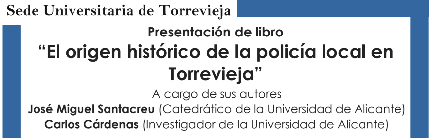 Torrevieja recupera el hilo de la memoria de su Policía Local con el libro “El origen histórico de la policía local en Torrevieja”, que se presenta el sábado, 29 de junio de 2024, en la Sociedad Cultural Casino de Torrevieja, a las 11:00h (entrada libre hasta completar el aforo). La iniciativa de este libro, parte de una propuesta de la concejalía de Policía del Ayuntamiento de Torrevieja y el Instituto Municipal de Cultura “Joaquín Chapaprieta”, a la Sede de la Universidad de Alicante en Torrevieja.