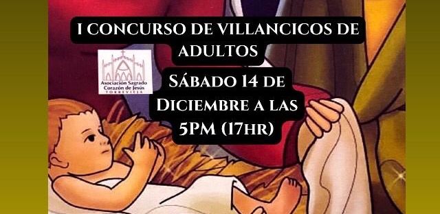 La Asociación del Sagrado Corazón de Jesús informa que el próximo sábado 14 de diciembre a las 17:00 horas, se llevará a cabo en la Parroquia del Sagrado Corazón un Gran Concurso de Villancicos, en el que participarán cuatro destacados coros de adultos: