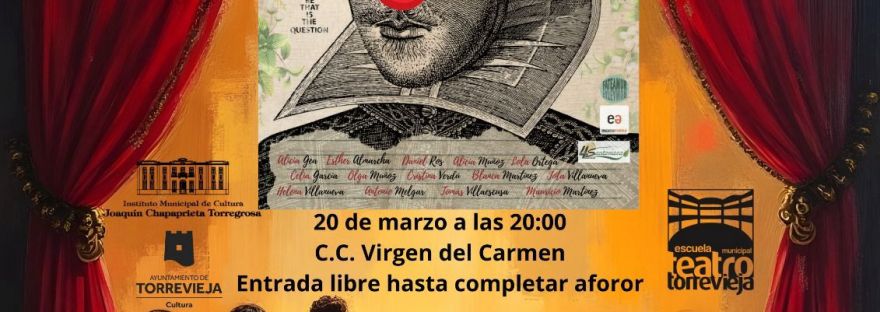 La obra de hoy es a cargo de la compañía Mar Teatro de Santomera (Murcia) con el título ”Desmontando a Shakespeare” donde una compañía de teatro se reúne para realizar un montaje que cambiará la historia del teatro universal y deciden llevar al escenario algunas obras del dramaturgo inglés William Shakespeare. Con su montaje empiezan a tocar las puertas de los grandes teatros buscando una oportunidad, pero las respuestas nunca son positivas. Deciden así, jugársela el todo por el todo y presentar completa la trilogía formada por Romeo y Julieta, Hamlet príncipe de Dinamarca y Otelo el moro de Venecia. Su obra se convierte en un acto de rebeldía contra el sistema burocrático cultural que siempre les dio la espalda. os esperamos en el Centro Cultural Virgen del Carmen a las 20:00 con entrada libre hasta completar aforo, no te lo pierdas.