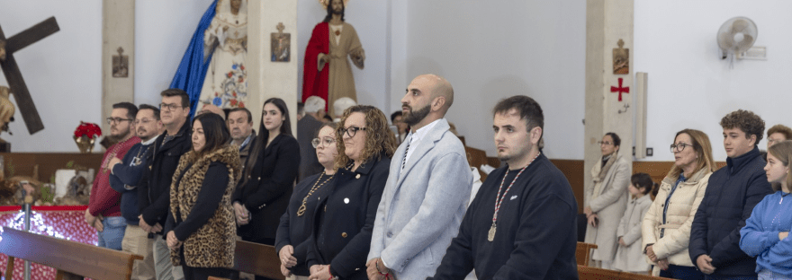 La Cofradía de Nuestro Padre Jesús de la Caída de Torrevieja ha celebrado la solemnidad litúrgica del Dulce Nombre de Jesús o el Santísimo Nombre de Jesús con la celebración de una solemne eucaristía en la que se honró la imagen del Dulce Nombre de Jesús que fue situada en el Altar Mayor de la Iglesia Parroquial de San Pedro y San Pablo, sede canónica de la Cofradía de La Caída. La misa fue oficiada por el párroco, Francisco Miravete Poveda y contó con la asistencia de la presidenta de la cofradía, Ana Rueda, a la que acompañó el presidente de la Junta Mayor de Cofradías, Francisco Montesinos. También asistieron numerosos cofrades y representantes de otras cofradías de la Semana Santa torrevejense. La parte musical de la misa estuvo a cargo de la Coral Arciprestal de la Inmaculada dirigida por Anibal Cano. Sonaron algunas composiciones navideñas propias de estas fechas en las que se ensalzó al Niño Dios.