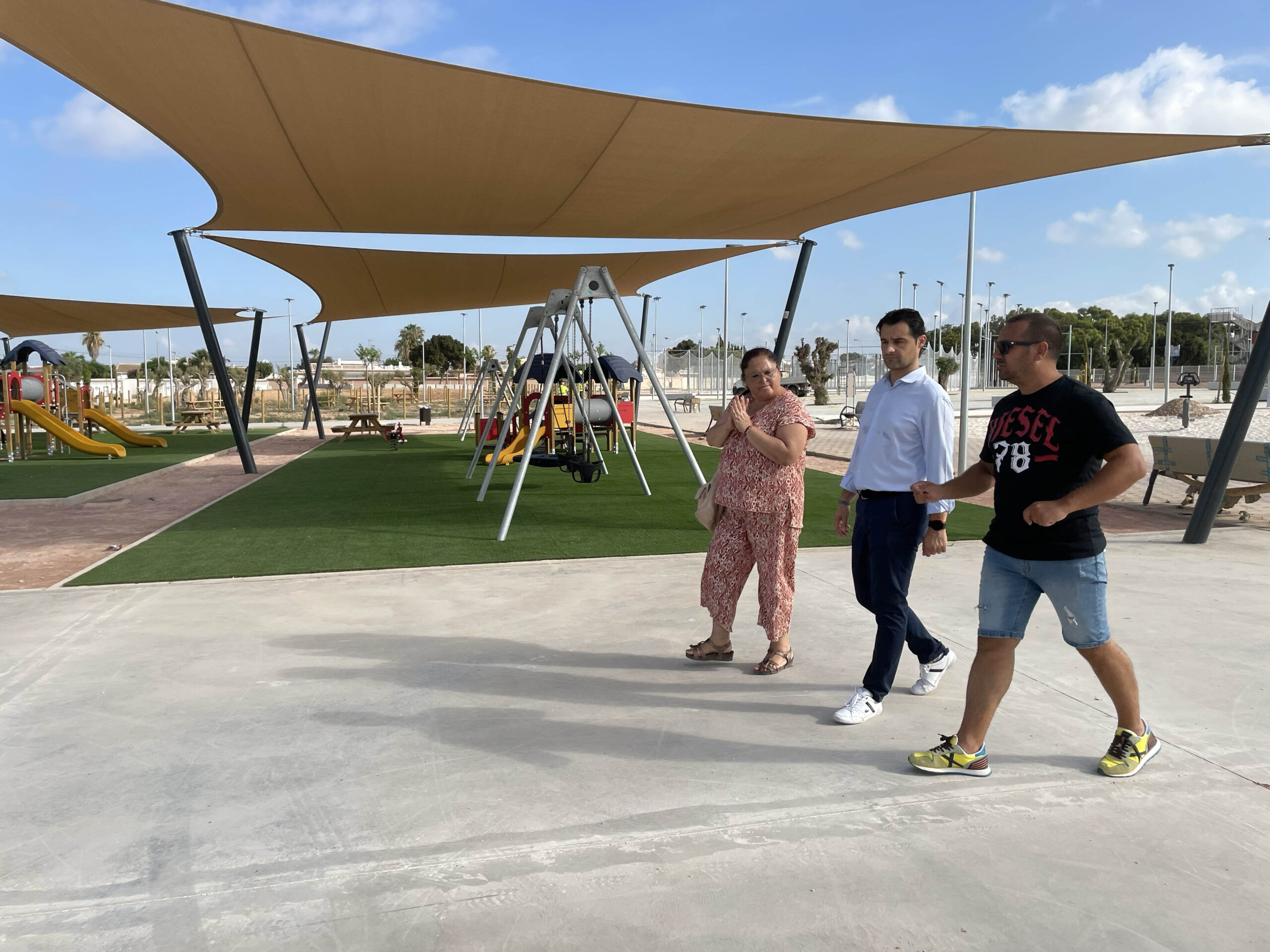 El alcalde de Torrevieja, Eduardo Dolón, junto a la concejal de Parques y Jardines, Concha, han visitado las obras de ajardinamiento y ordenación del nuevo Parque de La Siesta, las cuales se encuentran a muy buen ritmo, por lo que podrán estar finalizadas totalmente antes del plazo previsto, dado que la mercantil URDECON se ha comprometido a que en la mitad del tiempo establecido en el contrato podrá terminarse este gran parque.