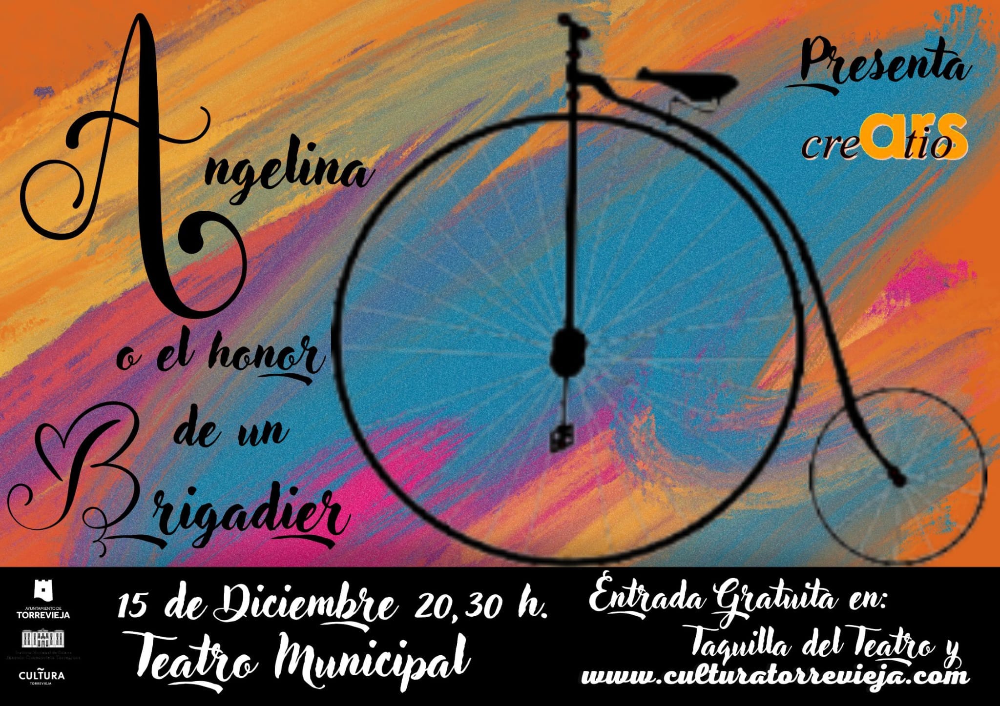 Este próximo jueves, 15 de diciembre, a las 20.30 horas, el Teatro Municipal será escenario del acto con que la Asociación Cultural Ars Creatio completará su programa de este año 2022 que nos va dejando. Un equipo conformado por diecisiete actores, varios técnicos y dos directores pondrán en escena la comedia en verso Angelina o el honor de un brigadier (un drama en 1880).