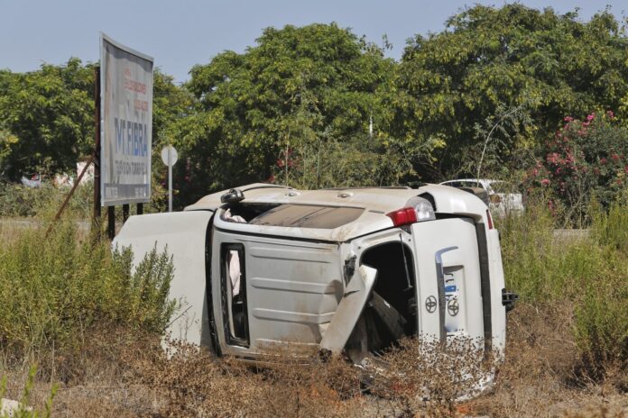 Está pasada madrugada sobre las 4,30 hpras de la madrugada un todoterreno de alta gama, que iba ocupando por cinco personas, sufrió un aparatoso accidente, tras chocar el vehículo contra la glorieta situada a la entrada del Residencial “La Veleta”, en la Avenida Desiderio Rodríguez, en el cruce que dirige el Hospital Universitario de la Ciudad.