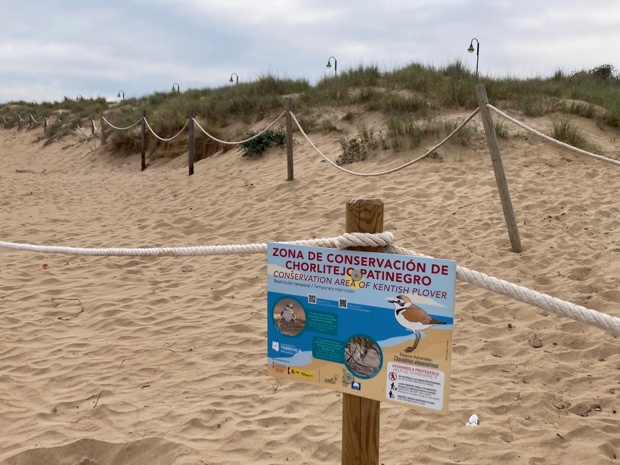 El concejal de Medio Ambiente y Playas, Antonio Vidal, informa que, como en años anteriores, el Ayuntamiento de Torrevieja ha puesto en marcha su campaña de protección del chorlitejo patinegro (Charadrius alexandrinus), una de las especies de aves más amenazadas del país y cuyas poblaciones nidificantes experimentan un sucesivo descenso año tras. En Torrevieja cría principalmente en el Parque Natural de las lagunas de La Mata y Torrevieja, pero unas pocas parejas también eligen el sistema dunar del Paraje Natural Municipal “Molino del Agua”, ubicado en la playa de La Mata, la más importante de la ciudad.