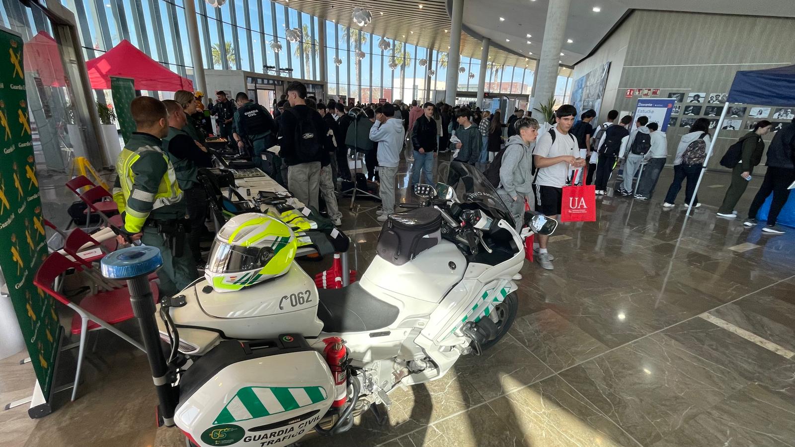 Uno de los aspectos más destacados de la feria es la participación de cuerpos de seguridad y emergencias, que acercan al alumnado diferentes opciones profesionales en el ámbito del servicio público: