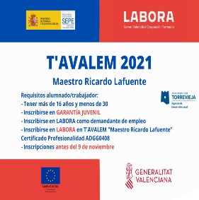 Avalem Joves Plus es un programa integral que busca la incorporación de los jóvenes menores de 30 años al mercado laboral. Las actuaciones abarcan desde la formación, a través de los cursos que organiza Labora, pasando por el empleo, con propuestas como ECOGJU que fomenta la contratación indefinida en empresas privadas de menores de 30 años, o ECOJUP, que promueve la contratación en prácticas en empresas privadas