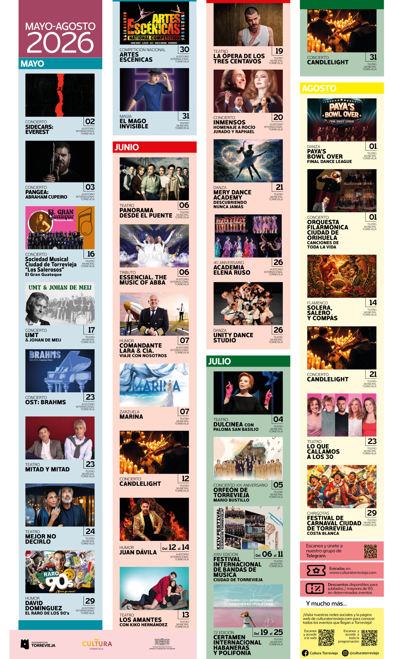 Con esta programación, Torrevieja reafirma su apuesta por la cultura como motor social y turístico, ofreciendo un verano repleto de propuestas que combinan grandes artistas, talento local y eventos de referencia nacional e internacional.
