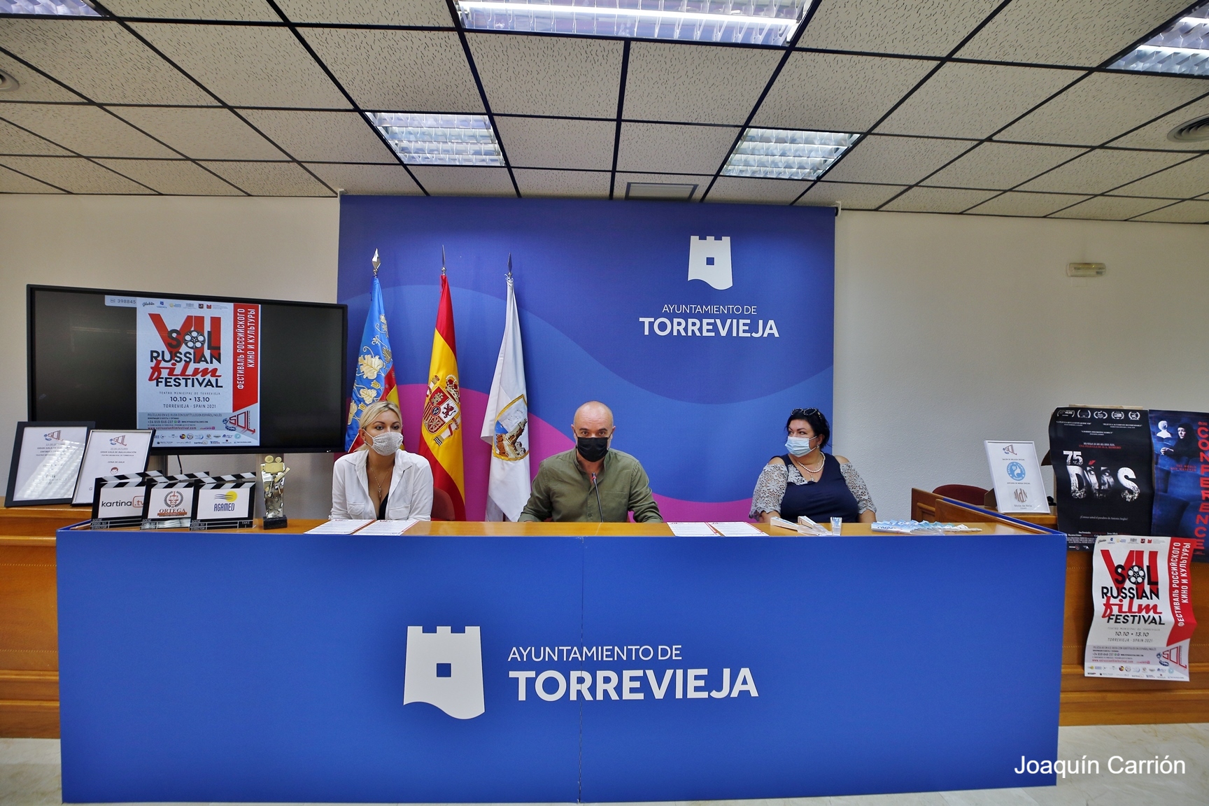 El concejal de Cultura del Ayuntamiento de Torrevieja, Antonio Quesada, y la directora del “Sol Rusian Film Festival”, Anna Semenova, han presentado en rueda de prensa la séptima edición del festival de cine y cultura ruso que se celebrará del 10 al 13 de octubre en el Teatro Municipal de Torrevieja, y que este año estará presidido por el popular actor ruso Aleksander Mikhaylov.
