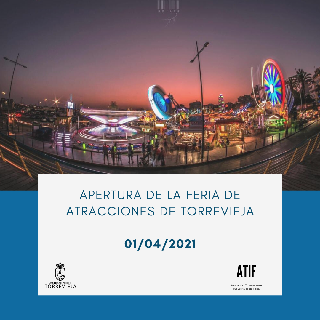 El concejal de Seguridad y Emergencias del Ayuntamiento de Torrevieja, Federico Alarcón, informa que desde mañana jueves y hasta el domingo 18 de abril, abrirá de nuevo al público la feria de atracciones de Torrevieja, ubicada en el recinto portuario, frente al Paseo de La Libertad. También la feria de La Mata, en la plaza de Encarnación Puchol, reabrirá mañana. Asimismo, la Asociación Torrevejense Industriales de Feria (ATIF) comunica que, debido al toque de queda establecido en la Comunidad Valenciana (22:00 horas), las atracciones de feria tendrán que cerrar al público a las 21:30 horas.