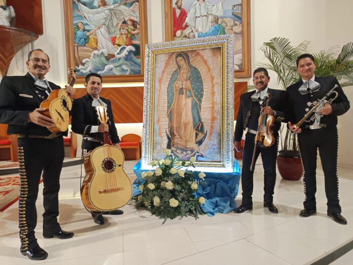 Con el canto de Las Mañanitas a la Virgen de Guadalupe, interpretadas por el Mariachi Voces de México, dio comienzo la conmemoración del 494.º aniversario de la aparición de la Virgen de Guadalupe al campesino Juan Diego. Se trata de una tradición llegada desde México que, por segundo año consecutivo, se celebra en la parroquia del Sagrado Corazón, ante la tilma traída el pasado año desde la Basílica de Guadalupe, en el cerro del Tepeyac, al norte de la Ciudad de México. La réplica posee las mismas dimensiones que la original y permanece expuesta durante todo el año en la parroquia, donde es visitada por numerosos fieles. Se contó con la asistencia ambos días, de la concejal Inmaculada Montesinos.