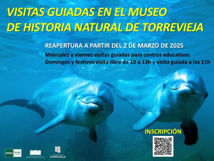 El concejal de Cultura del Ayuntamiento de Torrevieja, Antonio Quesada, informa que a partir del domingo, 2 de marzo, se reanudan las visitas guiadas en el Museo de Historia Natural de Torrevieja. En esta primavera, UNED-Torrevieja financia la realización de las visitas guiadas y las actividades programadas durante un total de 60 días para centros educativos, familias y público general. Las visitas irán acompañadas de la realización de actividades especiales, ambos para el conocimiento y sensibilización de sus visitantes en la biodiversidad de especies y la educación ambiental necesaria para su conservación.