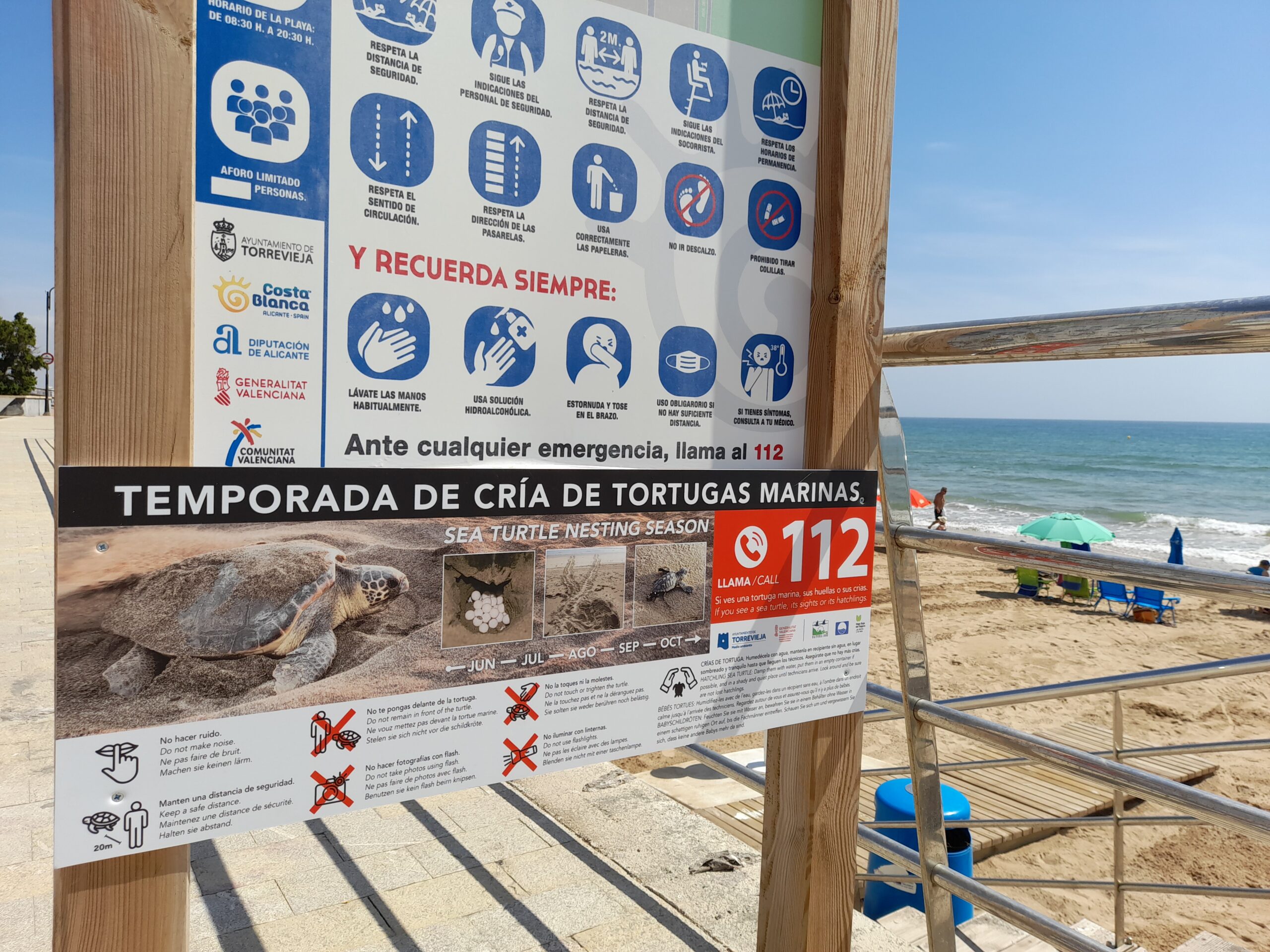 La Concejalía de Medio Ambiente instala carteles en las playas donde se explica cómo actuar en caso de nidificación de tortugas marinas, y que se inicia mediante llamada al 112