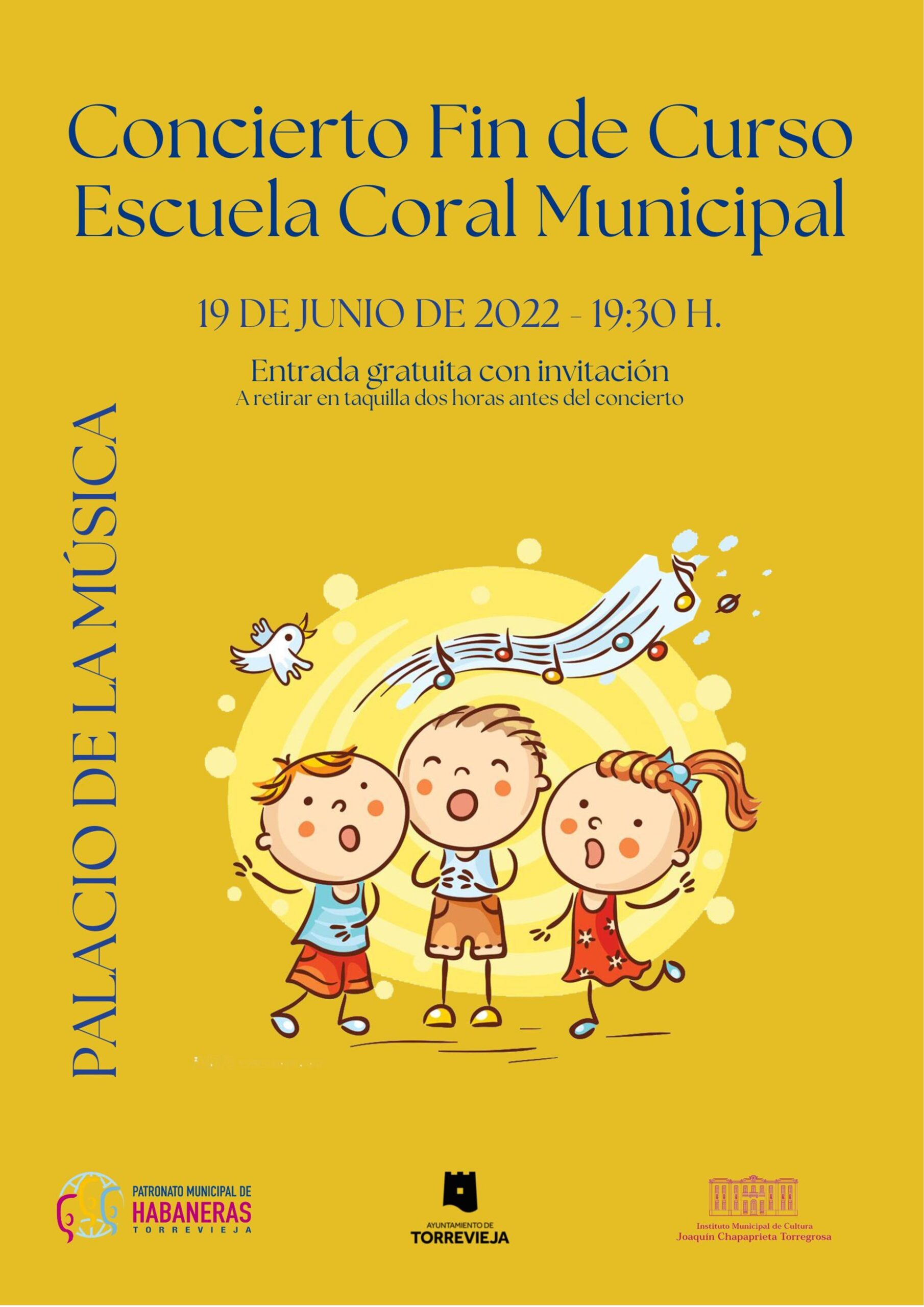 El concejal de Cultura del Ayuntamiento de Torrevieja, Antonio Quesada, informa que el domingo 19 de junio, a las 19:30 horas, en el Palacio de la Música, tendrá lugar el concierto de Fin de Curso de la Escuela Coral Municipal. Una escuela que se puso en marcha en el mes de febrero y en la que formalizaron su inscripción más de un centenar de alumnos y alumnas.