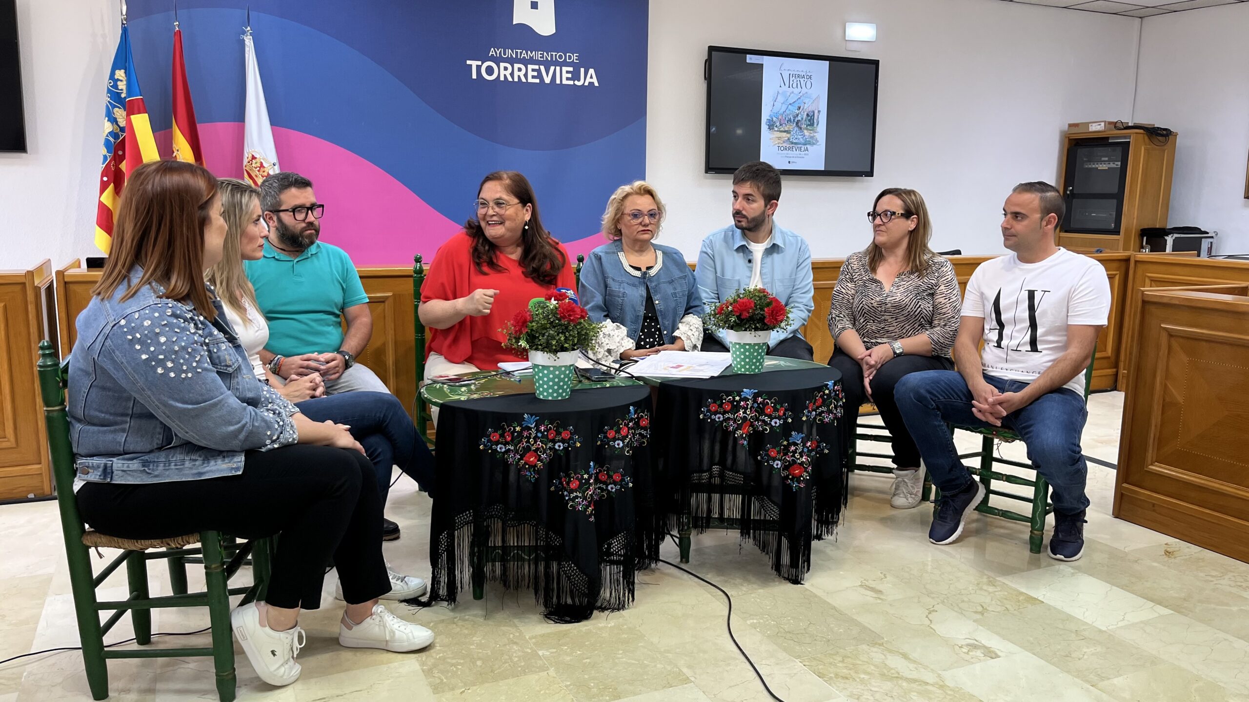 Esta mañana, en el Salón de Plenos del Ayuntamiento, decorado especialmente con motivos de feria, ha sido presentado el Homenaje a la Feria de Mayo de Torrevieja, que se celebrará los días 11 al 14 de mayo en el Parque de la Estación. La concejal de Fiestas, Concha Sala, ha estado acompañada por representantes de las academias de baile que ofrecerán sus espectáculos en un escenario que será instalado en la feria, así como por representantes de las 7 pequeñas casetas que también abrirán sus puertas en el recinto.