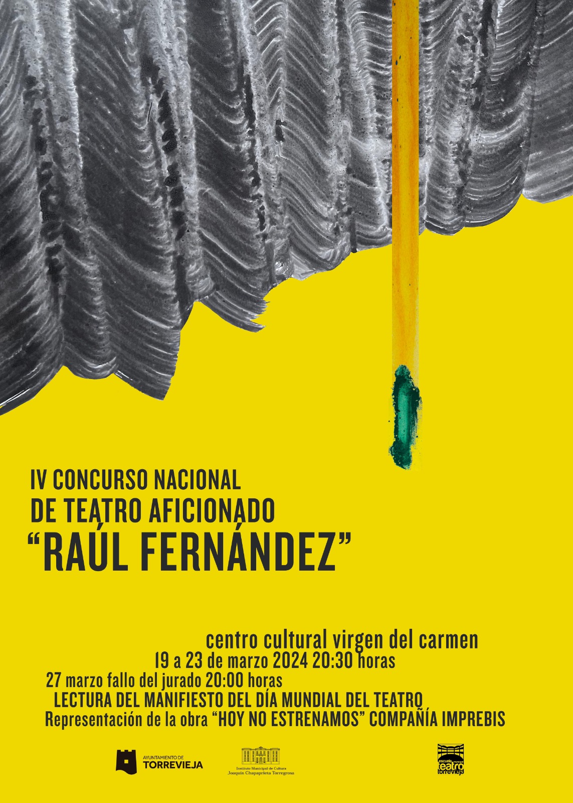 El IV Concurso Nacional de Teatro Aficionado “Raúl Ferrández”, que se celebrará entre los días 19 y 23 de marzo en el Centro Cultural Virgen del Carmen, a las 20:30 horas (con entrada gratuita hasta completar aforo), ha dado a conocer los cinco grupos y obras de teatro seleccionados para esta edición, habiéndose presentado un total de 63 compañías de toda España.