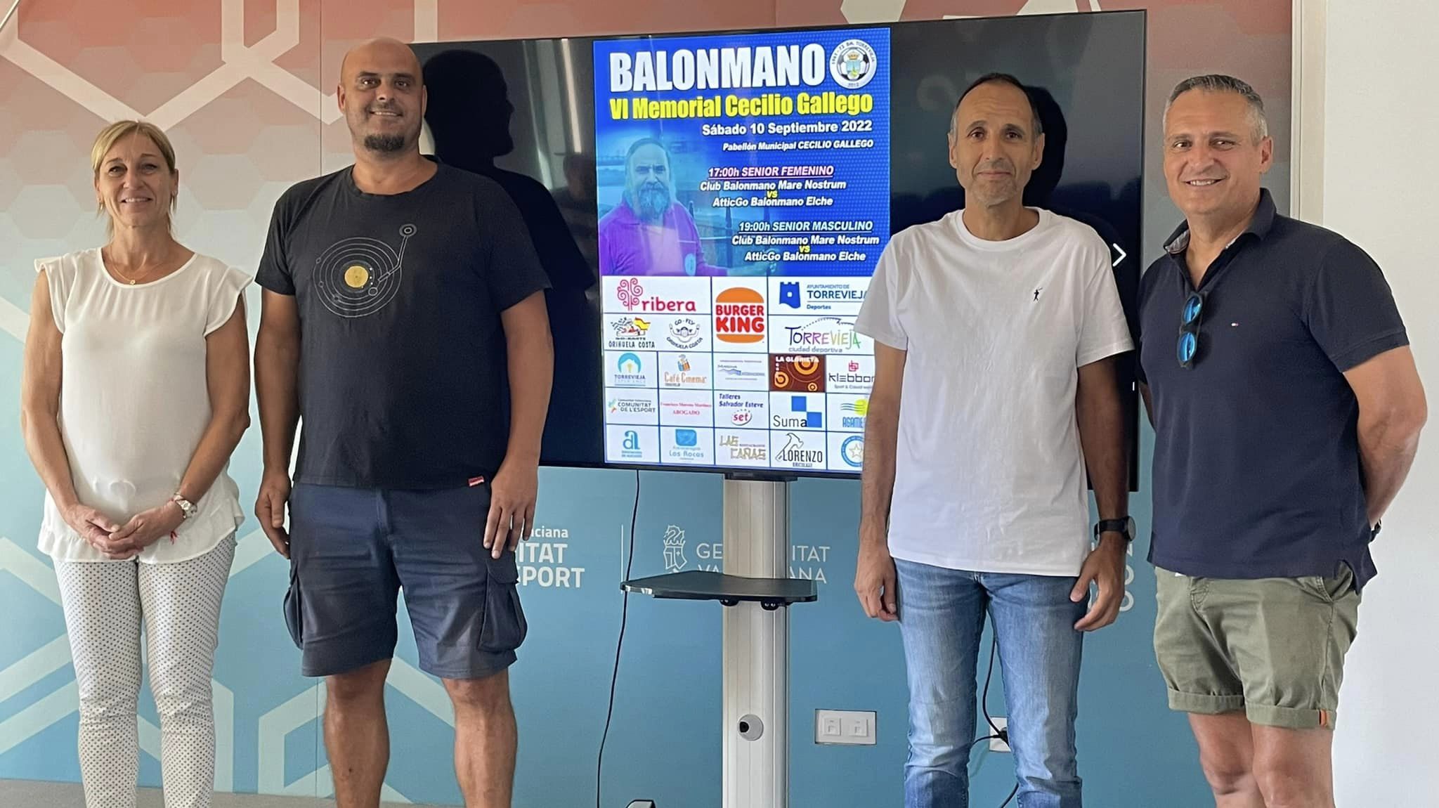 Tras la finalización del primer encuentro, el Club Balonmano Mare Nostrum Torrevieja y la concejalía de deportes del Ayuntamiento de Torrevieja harán entrega de un recuerdo a los familiares de Cecilio Gallego, los cuales siguen muy ligados al balonmano de la ciudad.