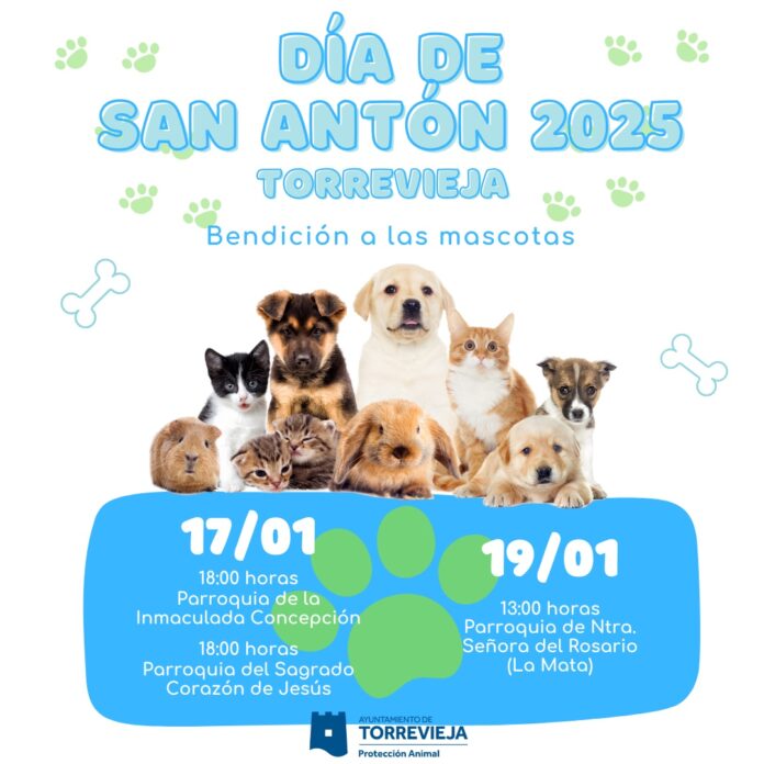 Como es tradicional en Torrevieja con motivo de la celebración el próximo viernes, 17 de enero, de San Antonio Abad (San Antón), patrón y protector de los animales, cada año se organizan diversas bendiciones para los animales con la coordinación de la Concejalía de Protección Animal para facilitar la asistencia de todos los participantes.