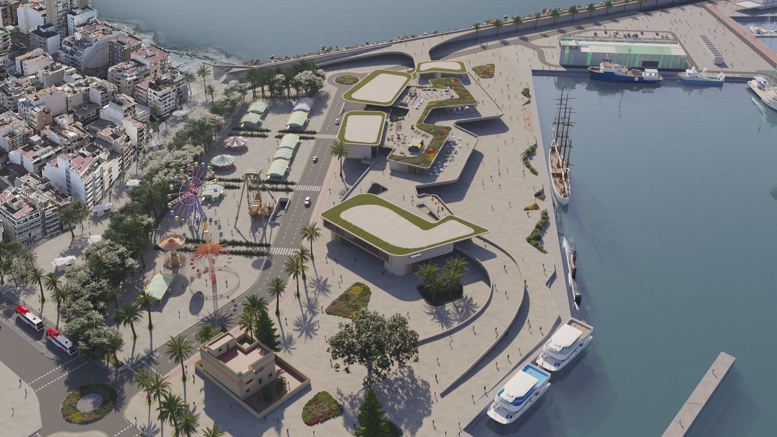 Un proyecto que convertirá el recinto portuario en un nuevo espacio público, comercial y de ocio que conectará la ciudad con el puerto a través de un paseo elevado ofreciendo a la población, visitantes y turistas unos miradores de excepción para disfrutar del paisaje marítimo que ofrece la ciudad.