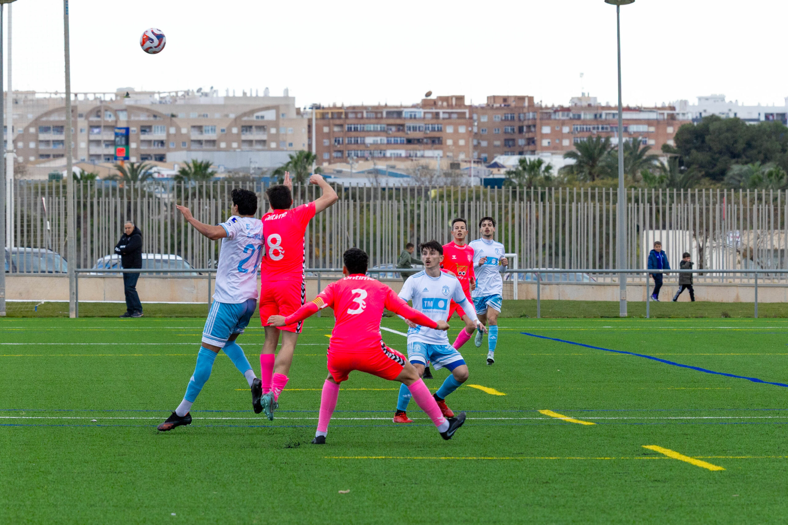Las bandas del Torrevieja, con Oussama y Caleb, fueron las principales vías de peligro para el conjunto local, aunque la igualdad se mantuvo hasta el minuto 30. En ese momento el árbitro expulsó al jugador visitante Tobías por doble amonestación, dejando al Olímpic con diez futbolistas.