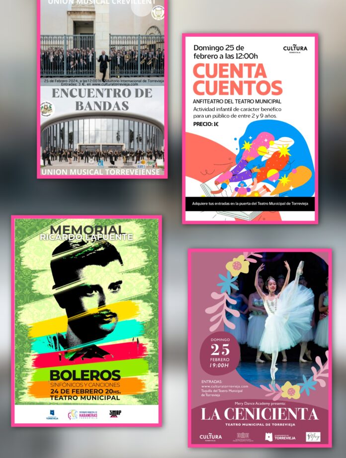 Tras un fin de semana con el mejor humor, teatro y música, esta semana la cultura local inunda el teatro y el auditorio con dos conciertos: uno en homenaje al gran maestro Ricardo Lafuente y otro con la unión musical de dos bandas de la provincia de Alicante. Además, vuelven los “Cuentacuentos” y la interpretación de “La cenicienta” de la mano de la Academia de danza María del Ángel, que nos esperan el domingo para cerrar la semana.