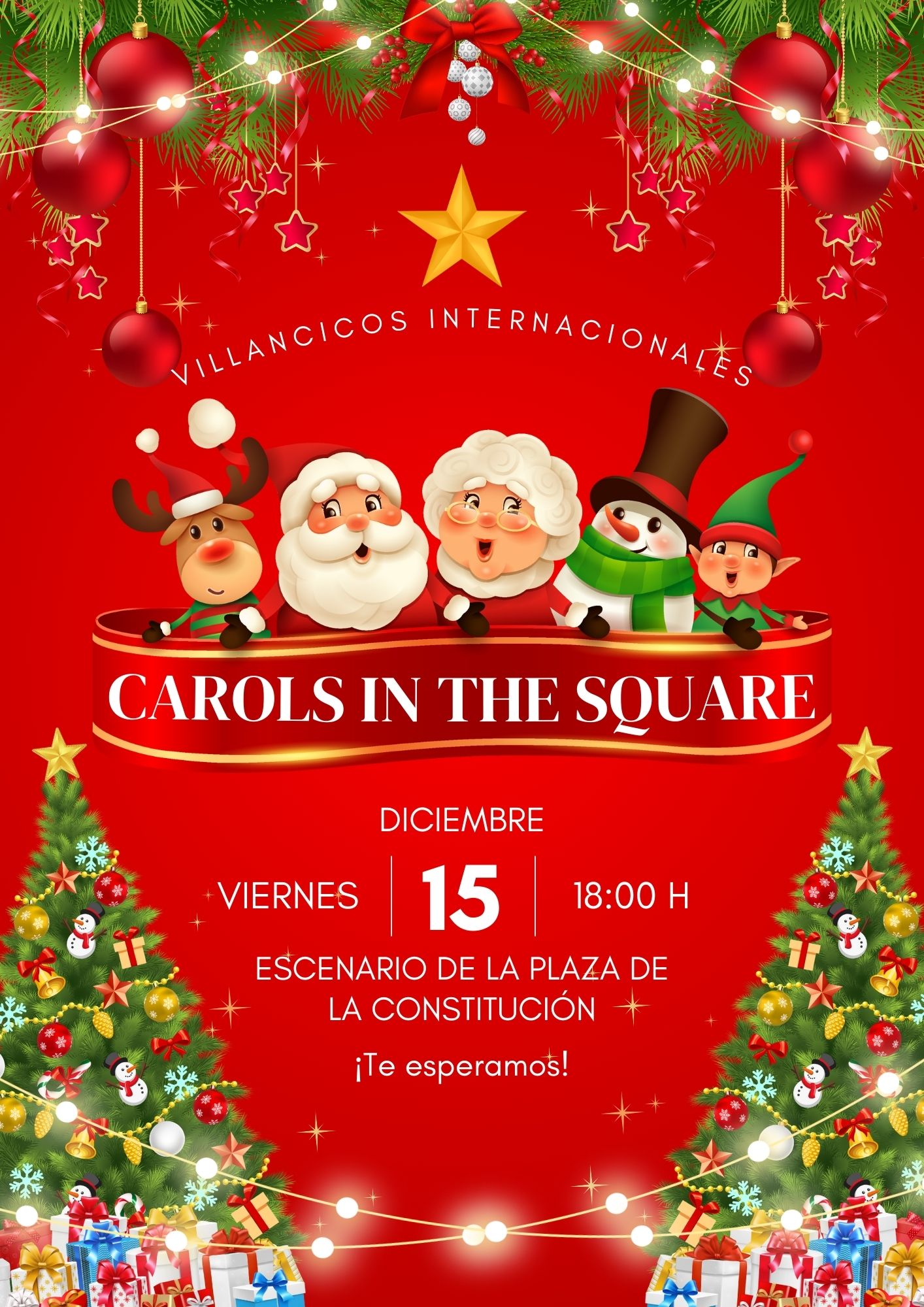 Una vez más se espera que la Plaza de la Constitución se quede pequeña para congregar a cientos de residentes internacionales, muchos de ellos vestidos con el traje típico de Papá Noel, que cada año por estas fechas participan en este original Carols in the Square, en el que también se cantan canciones típicas de sus países de origen.