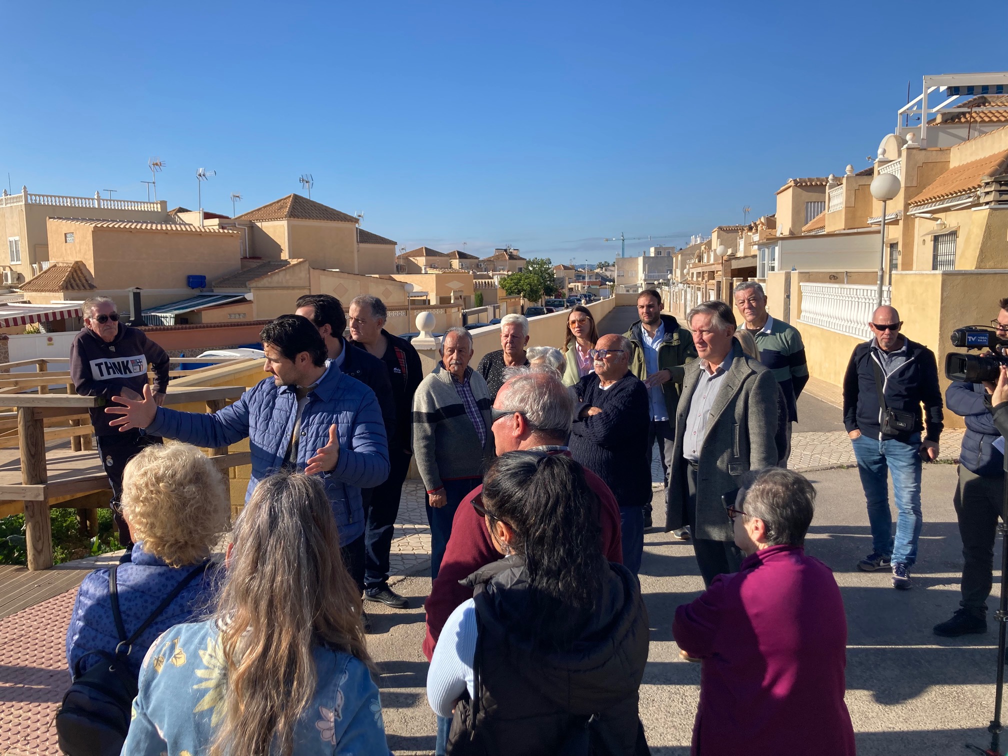 El alcalde de Torrevieja, Eduardo Dolón, la concejal de Calidad de los Servicios Urbanos, Sandra Sánchez, el gerente de AGAMED, Jorge Ballesta, y la gerente adjunta, Gemma Cruz, se han reunido en la mañana de hoy con los vecinos de la urbanización Doña Inés para darles a conocer la nueva actuación de pluviales que se va a desarrollar en breve en esta zona de Torrevieja.