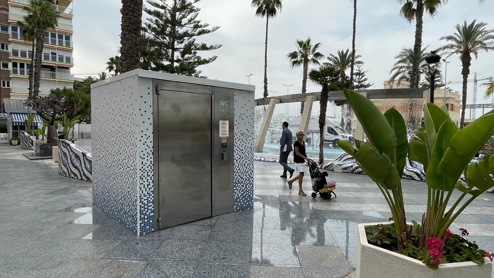 El alcalde de Torrevieja, Eduardo Dolón, y el concejal de Ocupación de Vía Pública, Federico Alarcón, han visitado el aseo de uso público ubicado en la plaza Waldo Calero, tras haberse puesto en funcionamiento en la mañana de hoy.