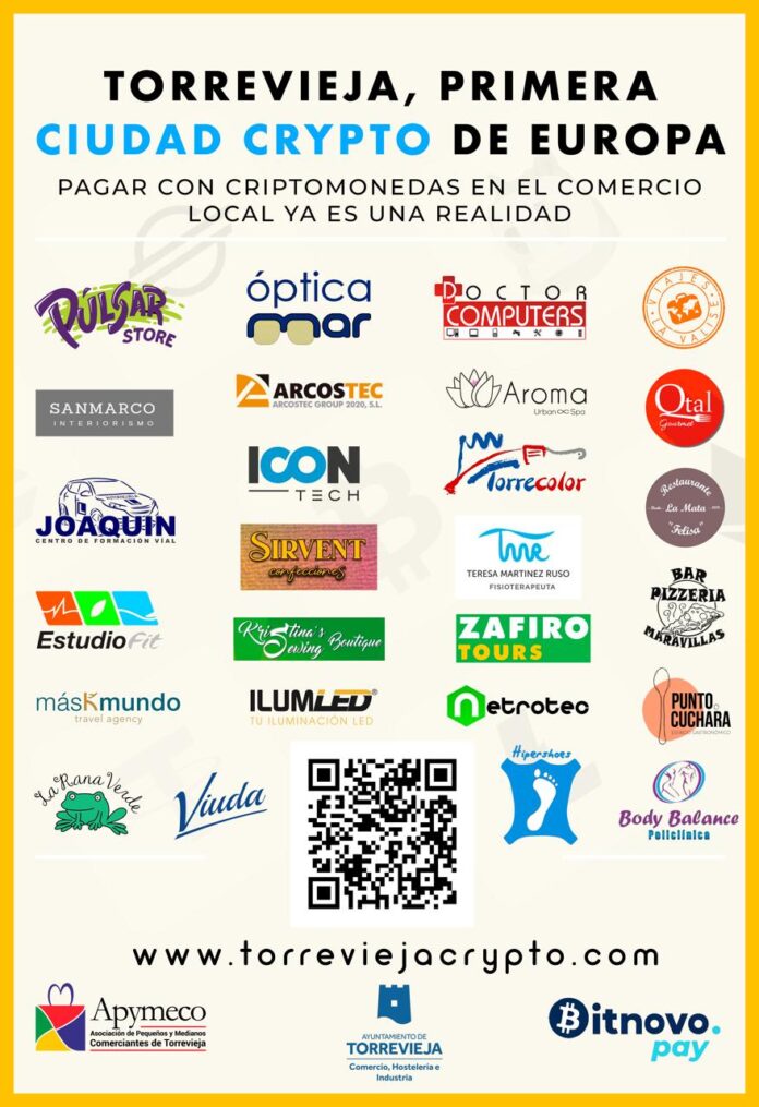 La Asociación de Pequeños y Medianos Comerciantes de Torrevieja (APYMECO), a través de un marco de colaboración con Bitnovo Pay, ha cumplido su compromiso de convertir a Torrevieja en la primera ciudad “crypto-friendly” de Europa antes del verano de 2024.