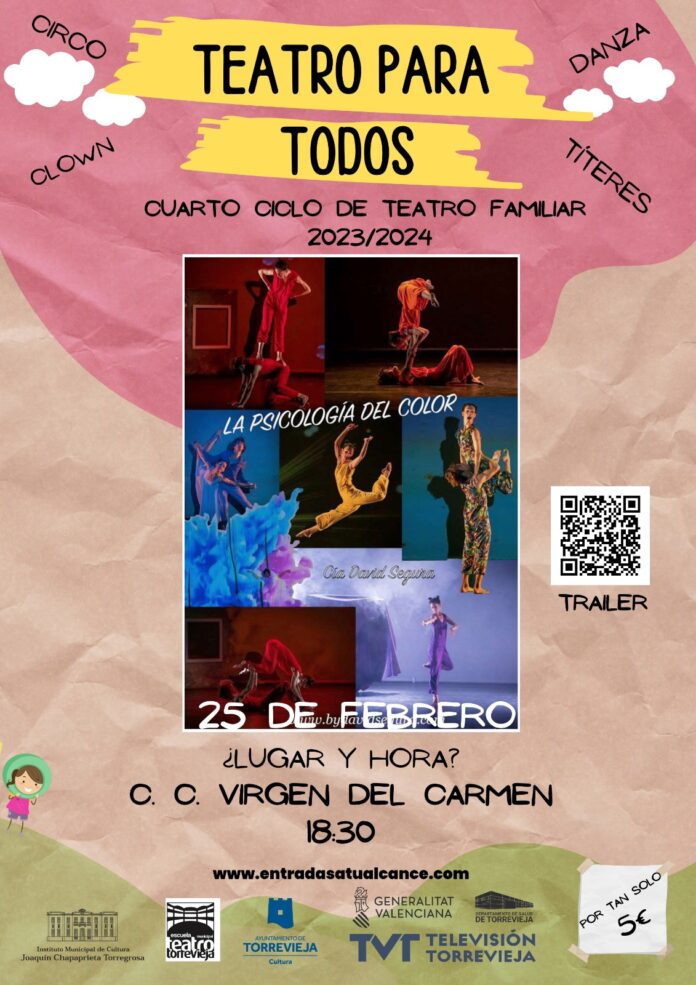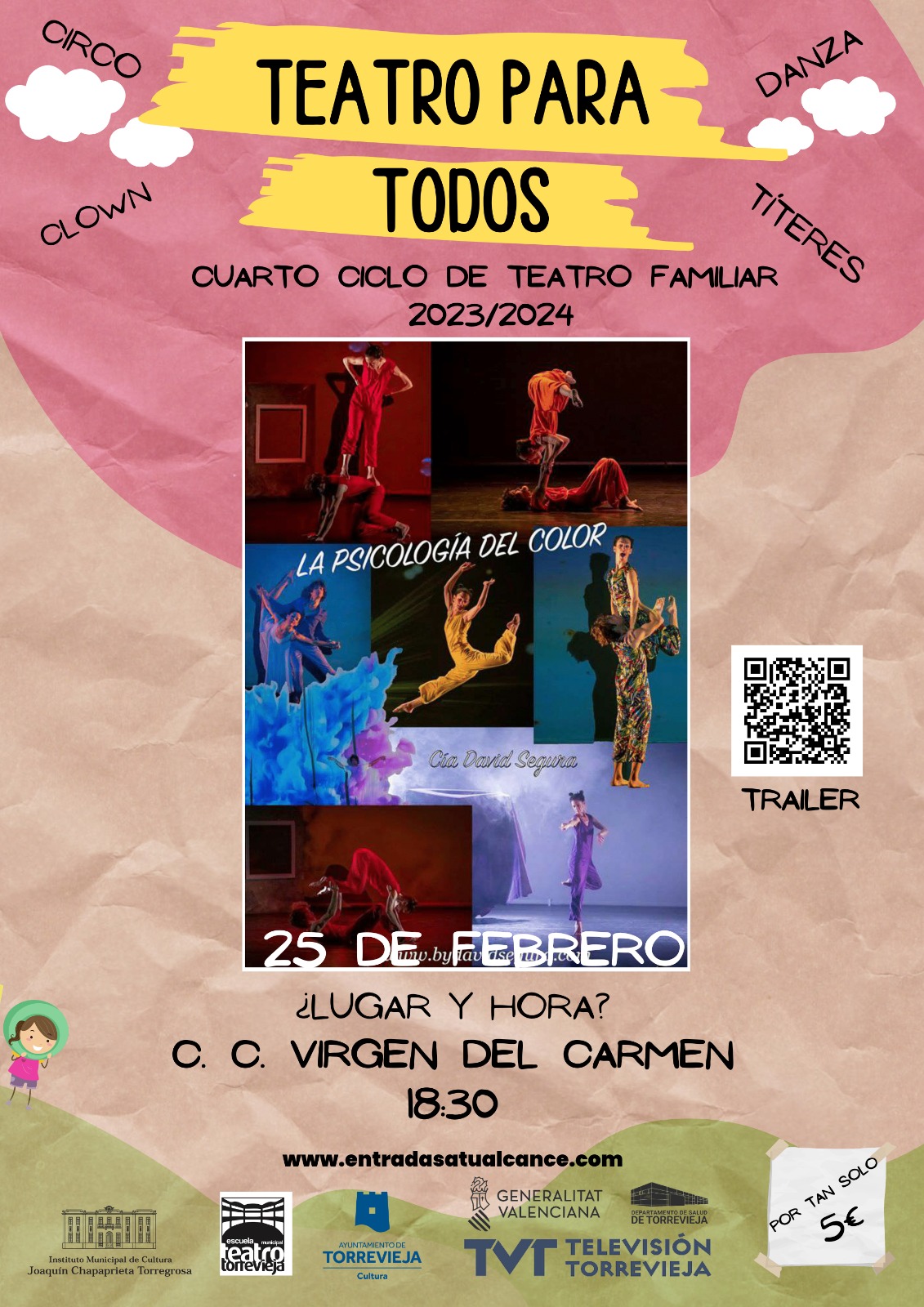 Este próximo domingo, 25 de febrero, continúa la IV edición del Ciclo de Teatro Familiar “Teatro para todos”, en el Centro Cultural Virgen del Carmen, a las 18:30 horas, con la representación de la obra “La psicología del color”. Edades recomendadas a partir de 5/6 años, con la entrada a un precio único de 5 euros.