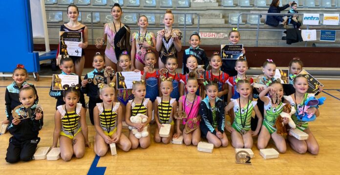 En modalidad de conjuntos, categoría Prebenjamín: Ava, Ana, Aidé, Paula y Victoriia fueron campeonas en su categoría tanto en la tercera fase como en la fase final.