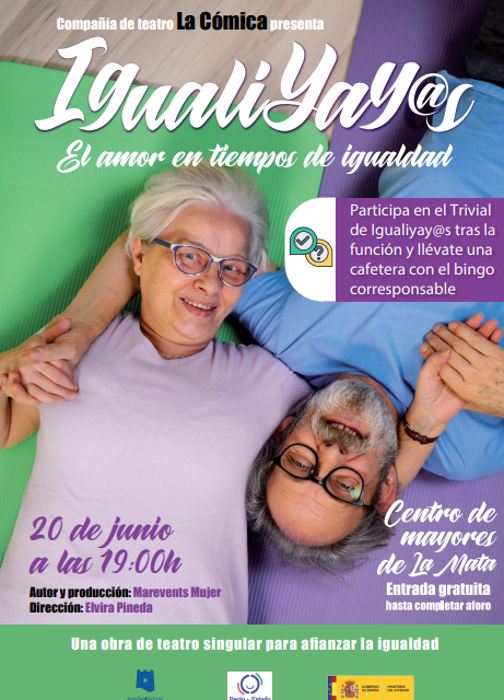 La Concejalía de Gente Mayor, Igualdad y Mujer del Ayuntamiento de Torrevieja presenta Igualiyay@s, una obra de teatro sensibilizadora que aboga por una sociedad  corresponsable, sin roles de género y en igualdad. Esta obra estará representada por la compañía La Cómica, bajo la dirección de  la reconocida directora teatral Elvira Pineda.