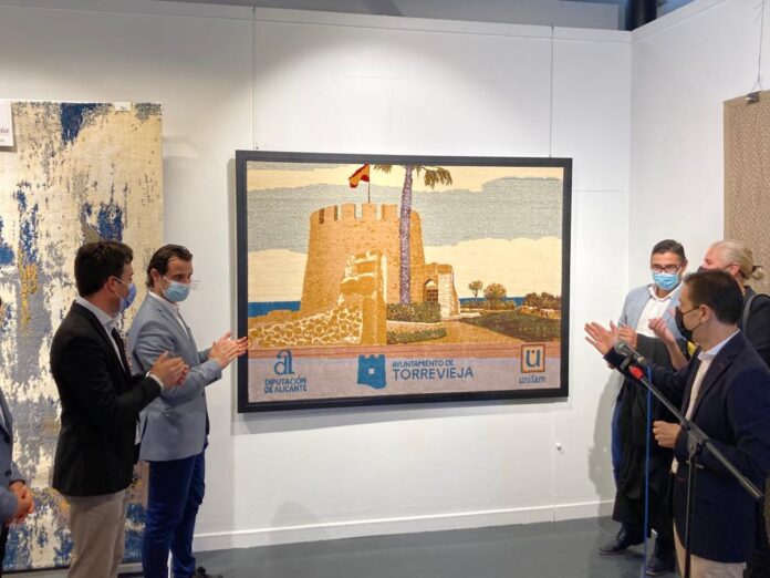 UNIFAN regalaban a la ciudad de Torrevieja una moqueta que representa la Torre del Moro, confeccionada por Alfombras Hispania