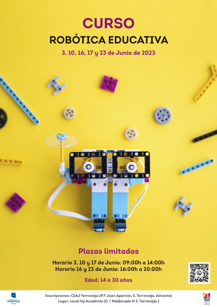 La Concejalía de Juventud del Ayuntamiento de Torrevieja informa que ya se encuentra abierto el plazo de inscripción para el curso de nuevas tecnologías Robótica Educativa. El curso es gratuito y va dirigido a jóvenes de Torrevieja con edades comprendidas entre los 12 y los 17 años, nacidos entre los años 2006 y 2011, y se realizará los días 3, 10 y 17 de junio, en horario de 9:00 a 14:00 horas, y 16 y 23 de junio, en horario de 16:00 a 20:00 horas, en la Academía Level Up de Torrevieja.