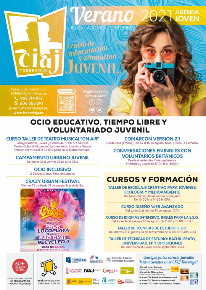 TORREVIEJA (29-06-21). El concejal de Juventud del Ayuntamiento de Torrevieja, Domingo Paredes, informa que ya está disponible la nueva agenda de joven de verano del Centro de Información y Animación Juvenil (CIAJ), conformada por un total de 12 actividades de ocio educativo y tiempo libre, cursos y eventos destinados a los jóvenes torrevejenses.