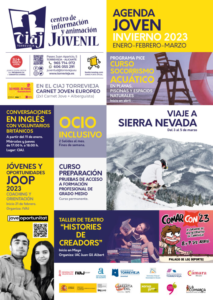 El concejal de Juventud del Ayuntamiento de Torrevieja, Domingo Paredes,  informa que ya se encuentra disponible la nueva Agenda Joven de invierno del Centro de Información y Animación Juvenil (CIAJ,) correspondiente al primer trimestre del año 2023.