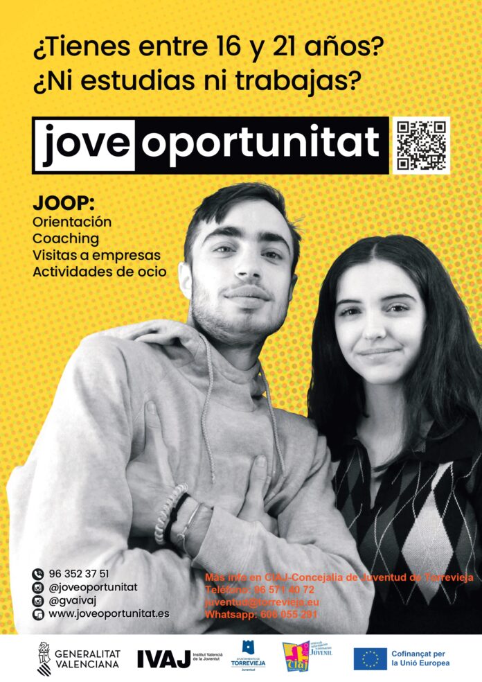 La Concejalía de Juventud del Ayuntamiento de Torrevieja está seleccionando a jóvenes para participar en el programa JOOP en su octava edición, y cuyo curso se pondrá en marcha el 30 de enero. Según ha informado el edil de Juventud, Domingo Paredes, se trata de una iniciativa promovida por el Institut Valencià de la Joventut (IVAJ) y financiada por el Fondo Social Europeo, cuyo objetivo es motivar y orientar a jóvenes entre 16 y 21 años que han abandonado los estudios.