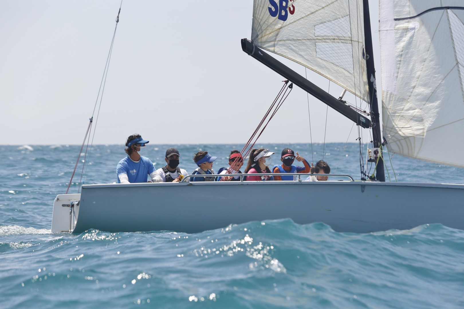 Comenzó la regata con un viento del NE con mucha mar y viento entre 14-16 nudos. Según nos explica el entrenador Kike Mena “Los tramos de ceñida fueron divertidos para los jóvenes regatistas, ya que de vez en cuando una ola pasaba por encima del barco mojando a todos sus regatistas. En los tramos de empopada seguía la diversión ya que con la ayuda de las olas, los barcos conseguían velocidades máximas alrededor de los 10 nudos y en definitiva eso es lo que más nos gusta. Una gran experiencia para nuestros pequeños que iban en el SB3 y mejor aún si es con una victoria en el caso del Ozu Dos”