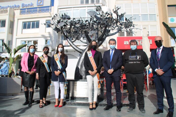 La Plaza de Waldo Calero acoge desde ayer miércoles, 8 de diciembre, una escultura conmemorativa del primer medio siglo de la celebración del Premio “Diego Ramírez Pastor”. La obra, creada por el escultor y maestro forjador Alejandro Cremades, es una alegoría realizada en hierro y acero inoxidable compuesta por un árbol de unas dimensiones de 2´8 metros de altura y 3´7 metros de anchura. Cada una de sus hojas representa a uno de los premiados en los últimos 50 años. Se trata de una escultura viva, en la cual se va a poder añadir la hoja con el premiado de cada año.
