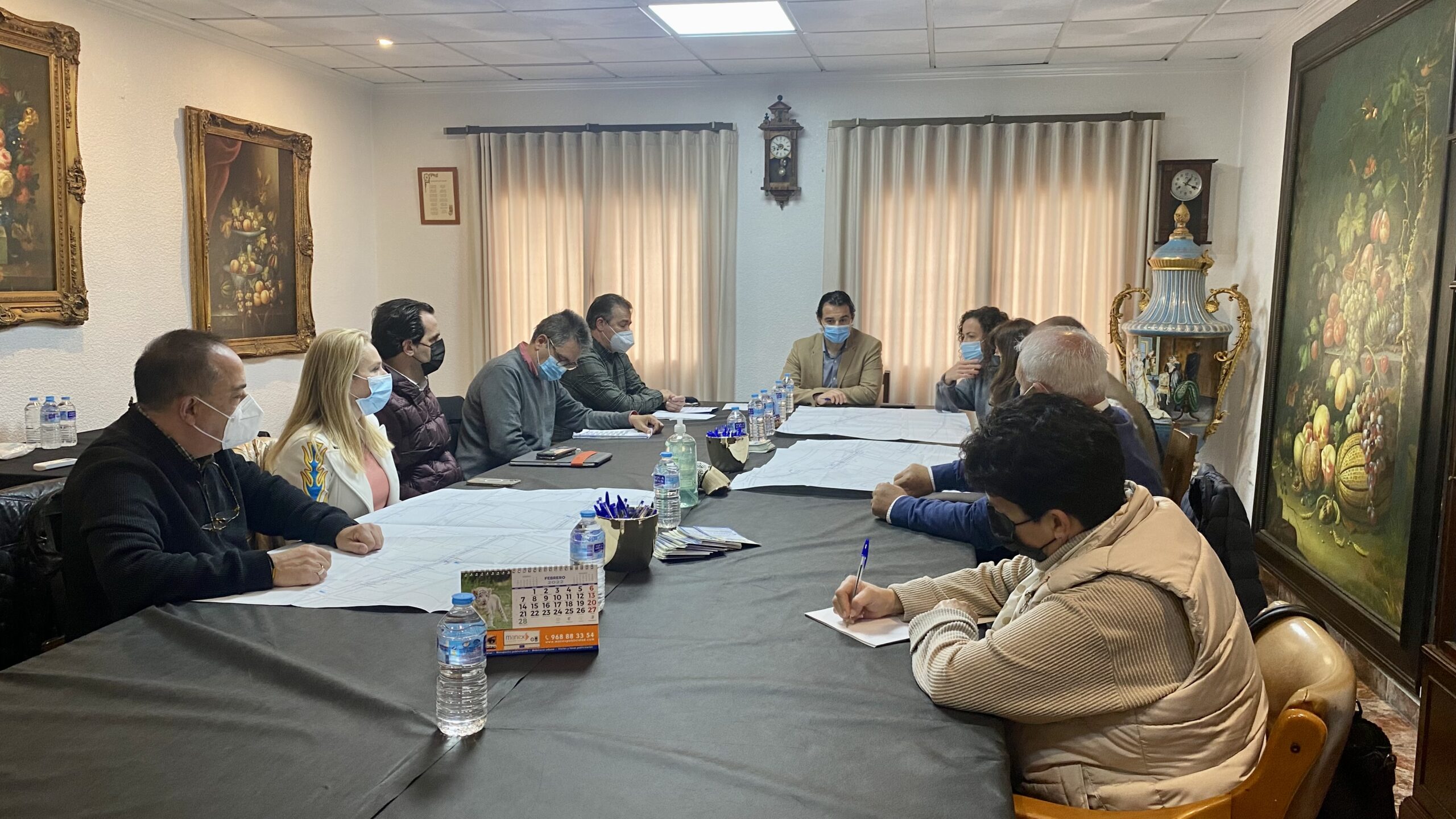 El alcalde de Torrevieja, Eduardo Dolón, acompañado por la concejal de Calidad de los Servicios Urbanos, Sandra Sánchez, la vicealcaldesa y concejal de Industria, Rosario Martínez, y los responsables de AGAMED, han mantenido en la mañana de hoy una reunión de trabajo con la Junta Directiva de la Asociación de Industriales y Comerciantes del Parque Empresarial Casa Grande, en la que se ha dado cuenta de la próxima renovación de la red de alcantarillado de la calle Escultores Hermanos Blanco.