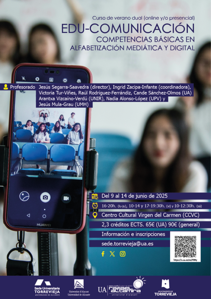 La Universidad de Alicante (UA), en el marco de los cursos de verano Rafael Altamira, presenta el curso “Edu-comunicación: competencias básicas en alfabetización mediática y digital”, una propuesta formativa innovadora que busca responder a los retos actuales de las ciudadanías mediáticas desde una perspectiva crítica, inclusiva y aplicada.