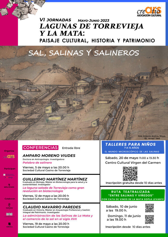 La Asociación Cultural Ars Creatio de Torrevieja presenta la sexta edición de las jornadas multidisciplinares “Lagunas de Torrevieja y La Mata: paisaje cultural, historia y patrimonio”, que se van a desarrollar durante el mes de mayo y junio de 2023.