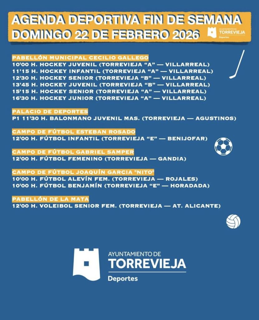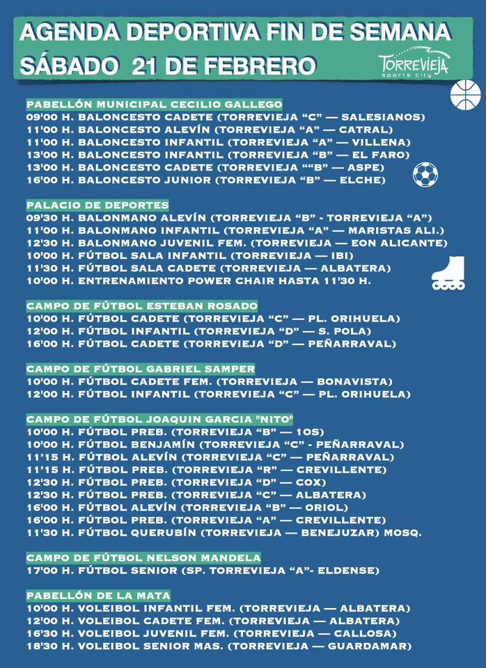 17:00 h.: Fútbol. SC. Torrevieja – CD Eldense «B». Estadio Nelson Mandela.