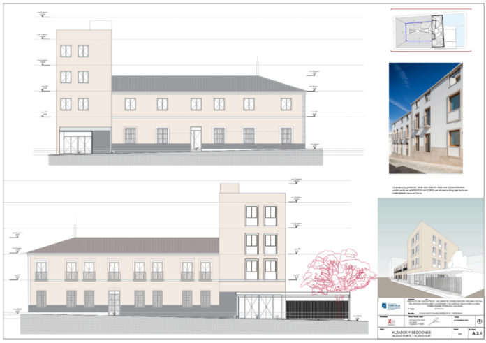 El proyecto de rehabilitación contempla la demolición de las estructuras existentes para su posterior reconstrucción, recuperando la imagen original del conjunto y garantizando la unificación de cotas entre ambos edificios. Esta decisión permite resolver los problemas derivados de la diferencia de niveles y optimizar la distribución interior y las circulaciones.