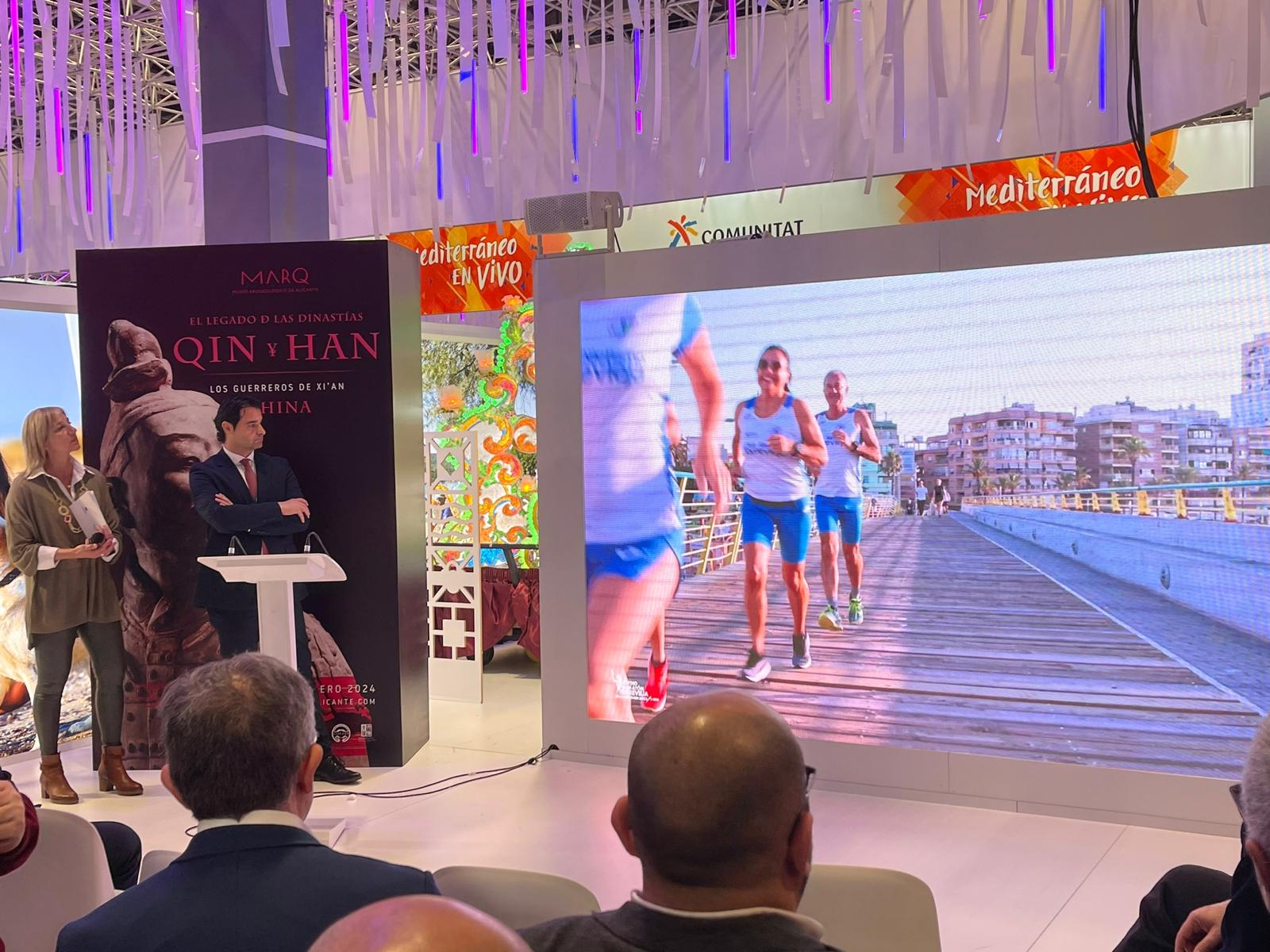 La concejalía de Deportes del Ayuntamiento de Torrevieja ha presentado en la Feria Internacional de Turismo (FITUR) la Agenda Deportiva, compuesta por más de una treintena de eventos de diversas disciplinas, de carácter nacional e internacional, así como los campus que forman parte del turismo deportivo en el que la ciudad lleva trabajando a lo largo de los últimos años. Al acto de presentación ha asistido el presidente de la Federación Española de Natación, Fernando Carpena.