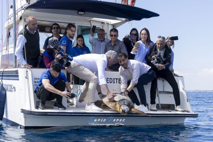 La suelta se ha realizado desde una embarcación en aguas de Torrevieja, con la participación del alcalde, Eduardo Dolón, el concejal de Medio Ambiente y Playas, Antonio Vidal, el biólogo municipal, Juan Antonio Pujol, el presidente del Real Club Náutico Torrevieja (RCNT), Carlos Carmona, y el equipo veterinario de la Fundación Oceanogràfic.