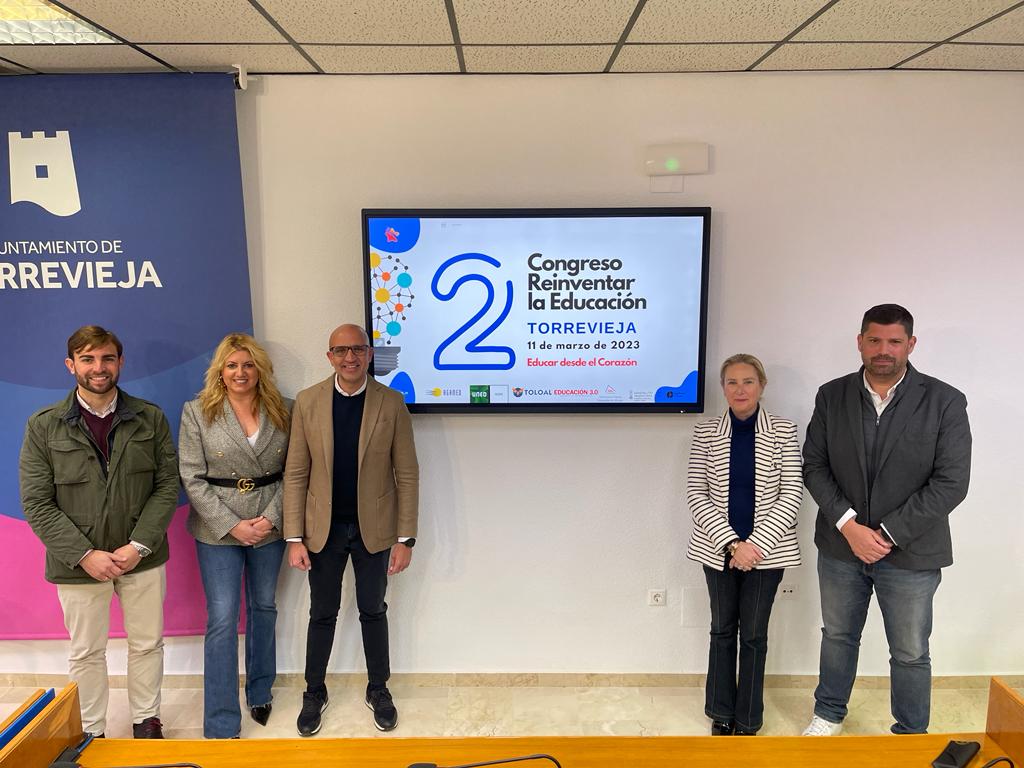 El concejal de Educación del Ayuntamiento de Torrevieja, Ricardo Recuero, y la gerente adjunta de AGAMED, Gemma Cruz, han presentado en la mañana de hoy el segundo congreso “Reinventar la educación”, que tendrá lugar el próximo 11 de marzo, en esta ocasión en el Auditorio Internacional de Torrevieja.