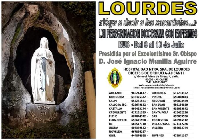 La Delegación de Torrevieja de la Hospitalidad Diocesana de Ntra. Sra. de Lourdes comunica que ya está abierto el plazo de inscripciones para formar parte de la próxima Peregrinación con Enfermos a Lourdes presidida por el Obispo de la Diócesis, D. José Ignacio Munilla a celebrar del próximo 8 al 13 de Julio de 2022.