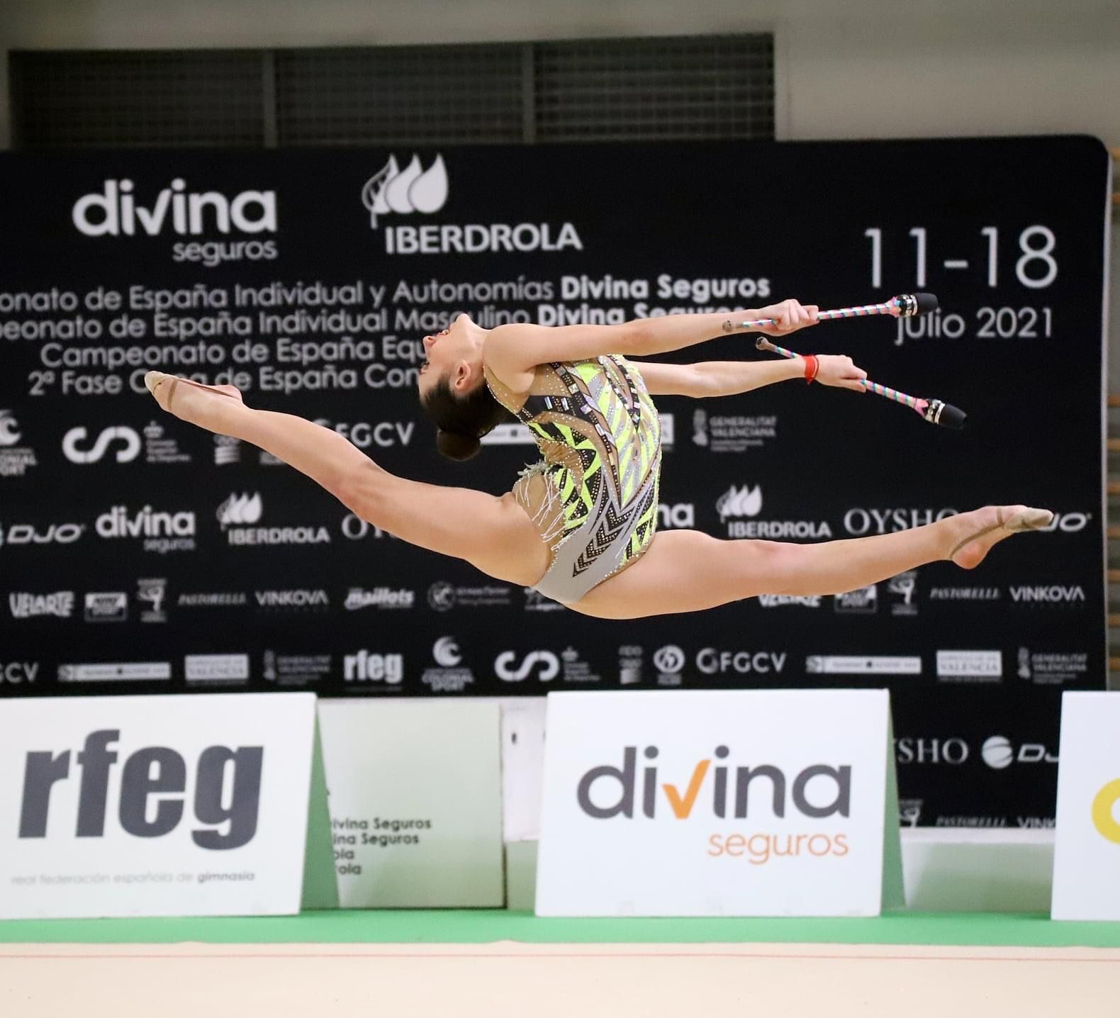Polina Berezina obtuvo la tercera posición en pelota, y  la primera posición en aro, mazas y cinta, proclamándose campeona de España en categoría honor.