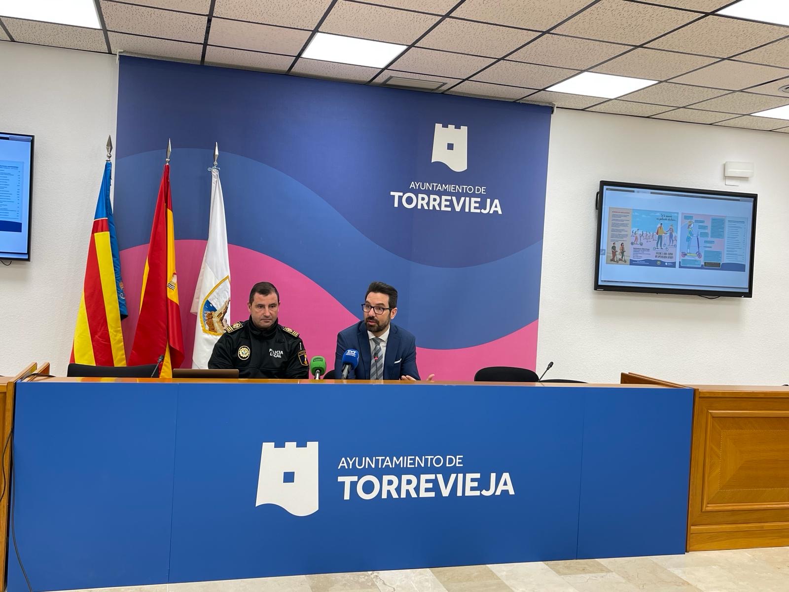 El concejal de Seguridad y Emergencias, Federico Alarcón, y el Intendente de la Policía Local, Óscar Cartón, han presentado la campaña de concienciación de las normas de circulación que se aplican a los vehículos de movilidad personal (VMP).